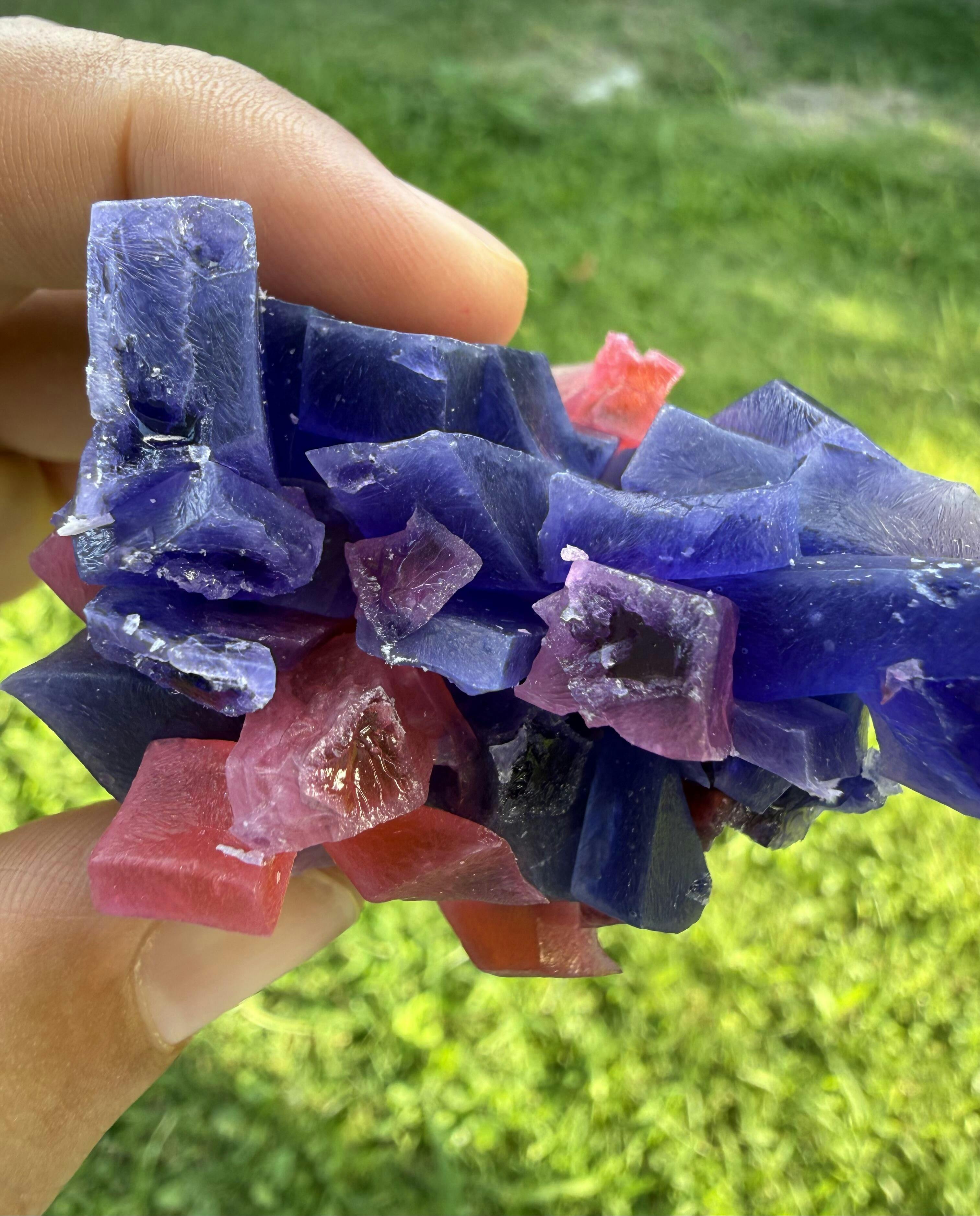 - Hand-crafted strawberry-blueberry crystal candy