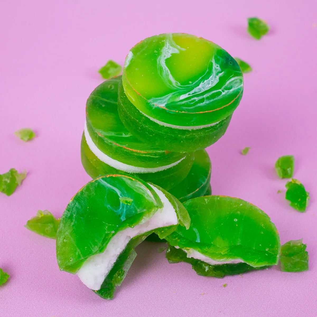 e your tastebuds to the tropics. Zesty lime crystal candy shell cracks open to toasted coconut marshmallow with a tangy edge.