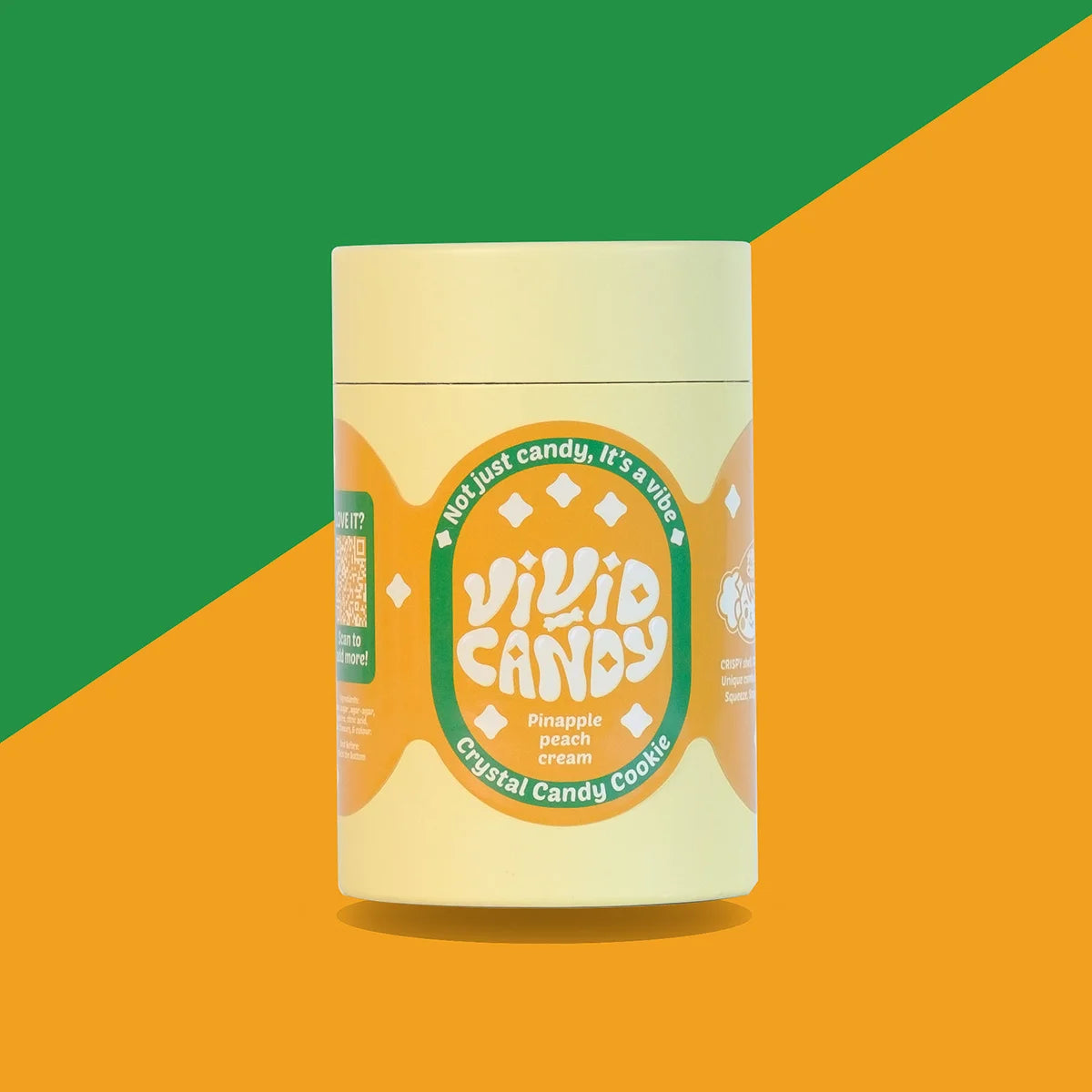 A fruity dream in every bite. Crunchy pineapple crystal candy shell hides a creamy peach marshmallow with a tangy surprise.